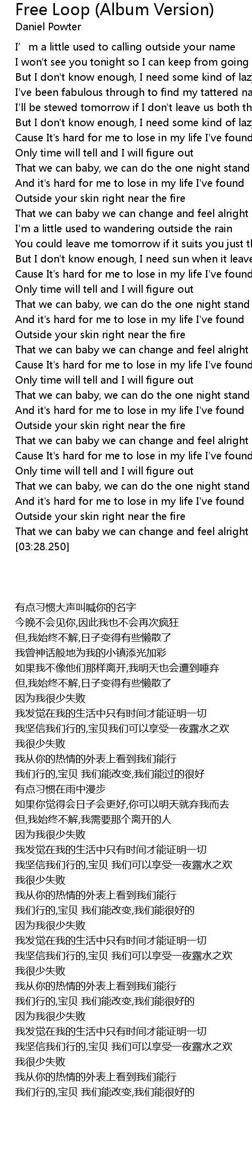 | [03:16.700] | And it' s hard for me to lose in my life I' ve found |