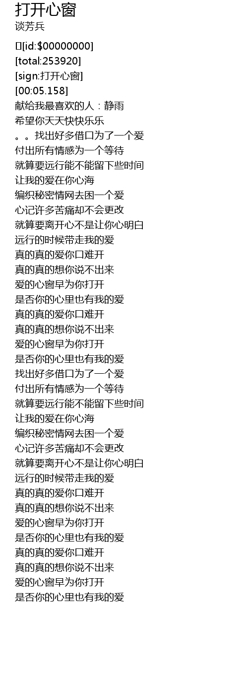| [01:34.760] | ài de xīn chuāng zǎo wèi nǐ dǎ kāi |