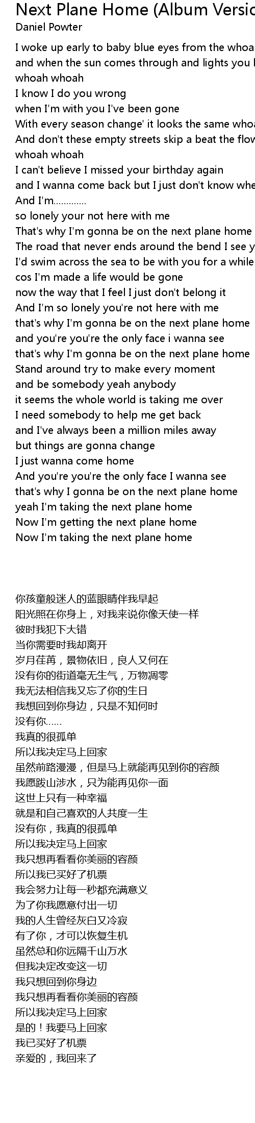 that's why I gonna be on the next plane home |