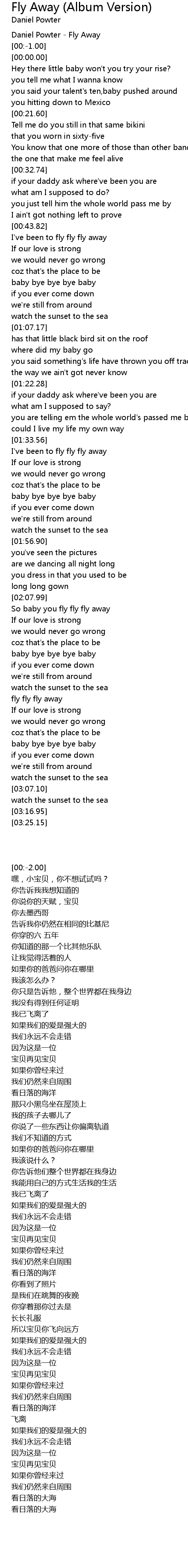 Daniel Powter - Fly Away |