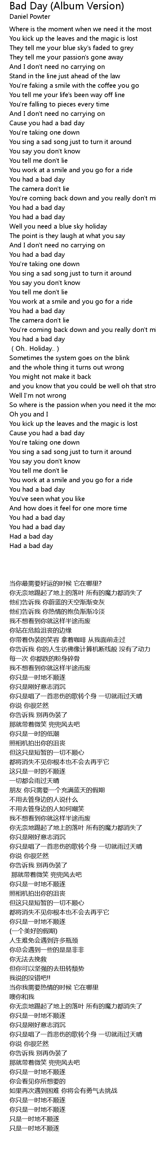 | [02:53.010] | Cause you had a bad day |