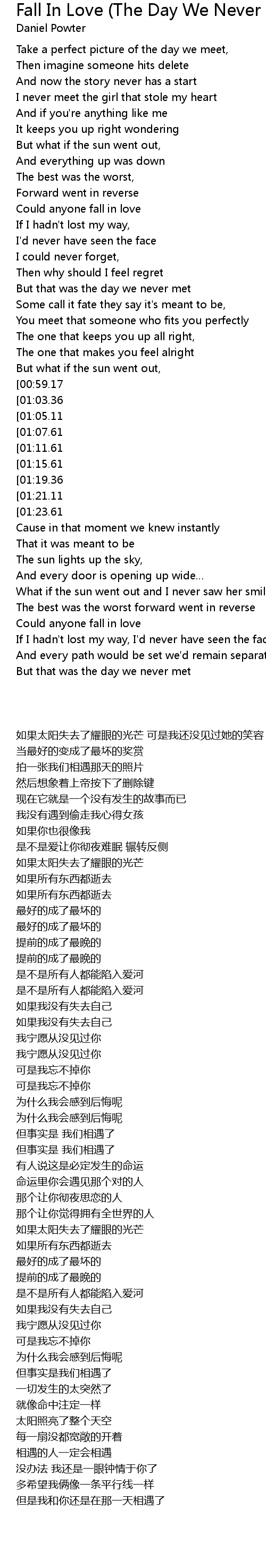 | [01:23.61] | But that was the day we never met |