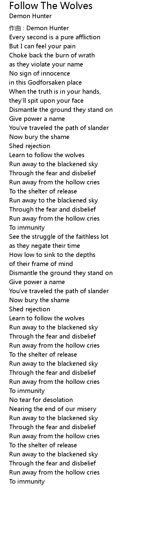 | Song | Follow The Wolves |
