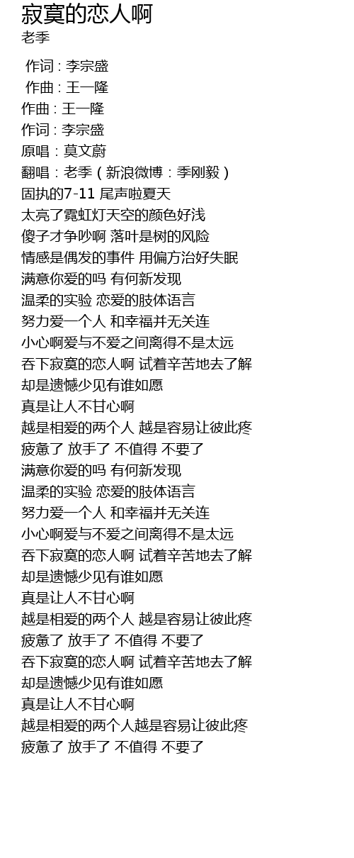 | [00:11.320] | 翻唱:老季(新浪微博:季刚毅) |