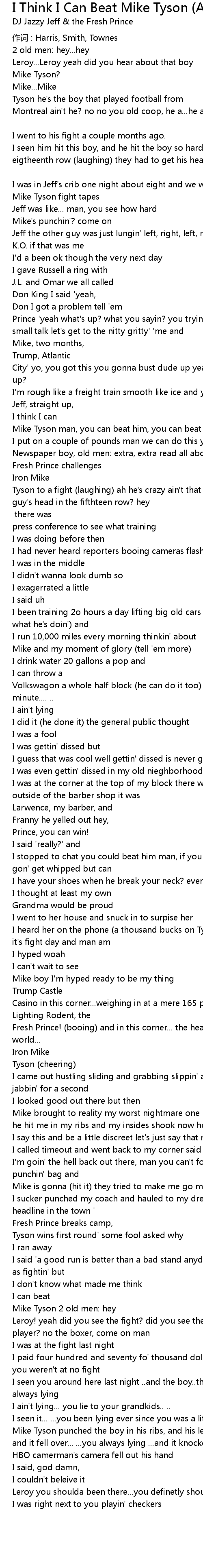 | Mike Tyson man, you can beat him, you can beat him yo man, word up yo | |