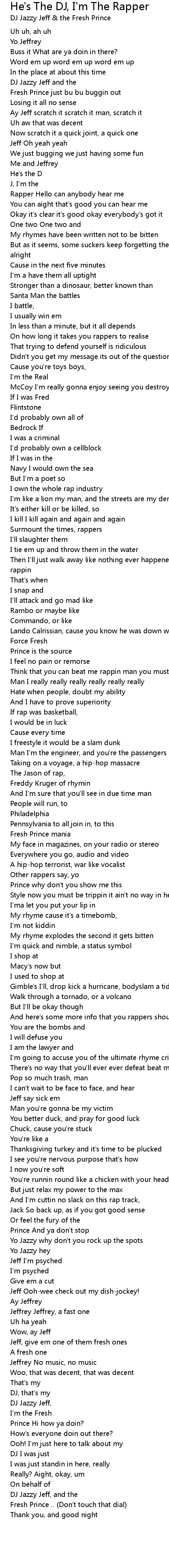 Fresh Prince just bu bu buggin out |