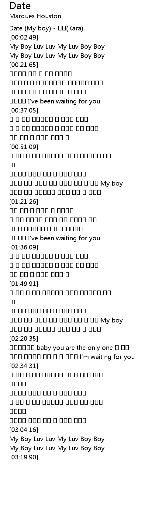 | [00:00.83] | Date (My boy) - 카라(Kara) |