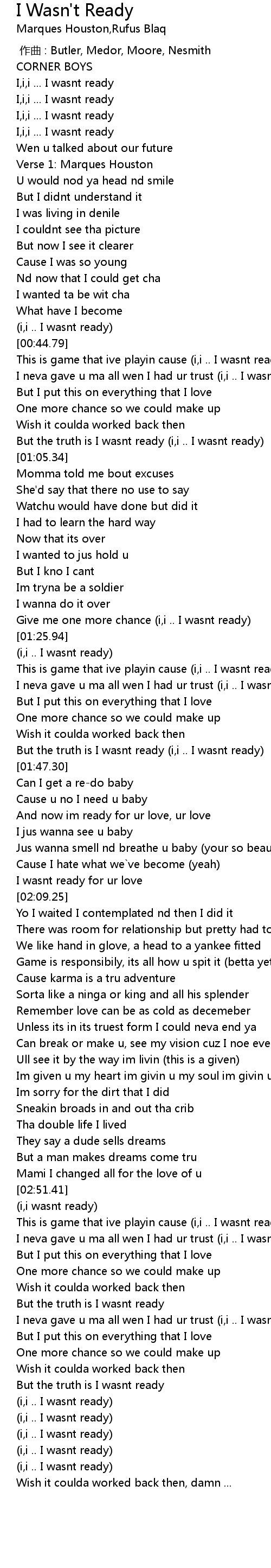 | [02:54.66] | This is game that ive playin cause i, i .. I wasnt ready |
