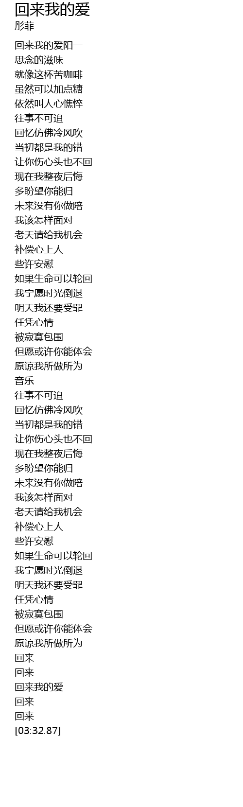 | [00:00.00] | huí lái wǒ de ài yáng yī |