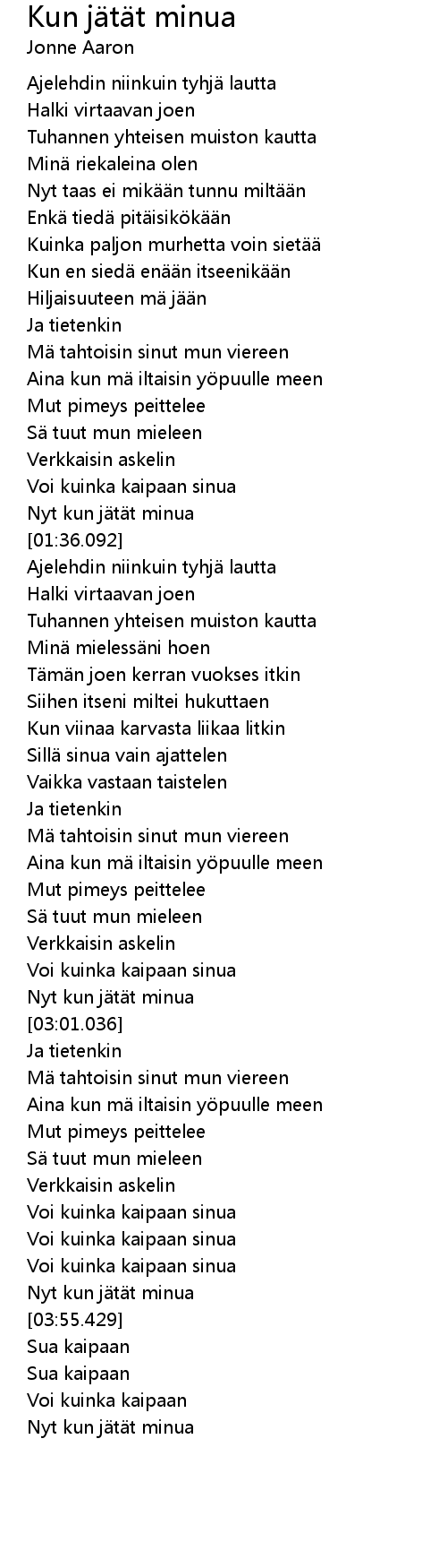 | [03:45.583] | Voi kuinka kaipaan sinua |