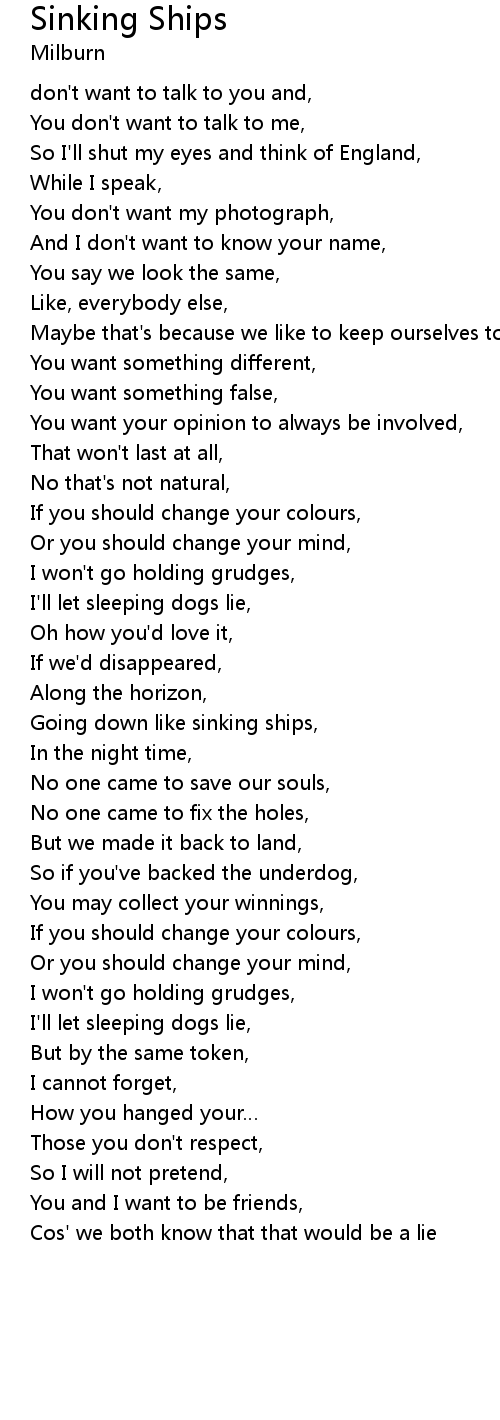 | Going down like sinking ships, | |