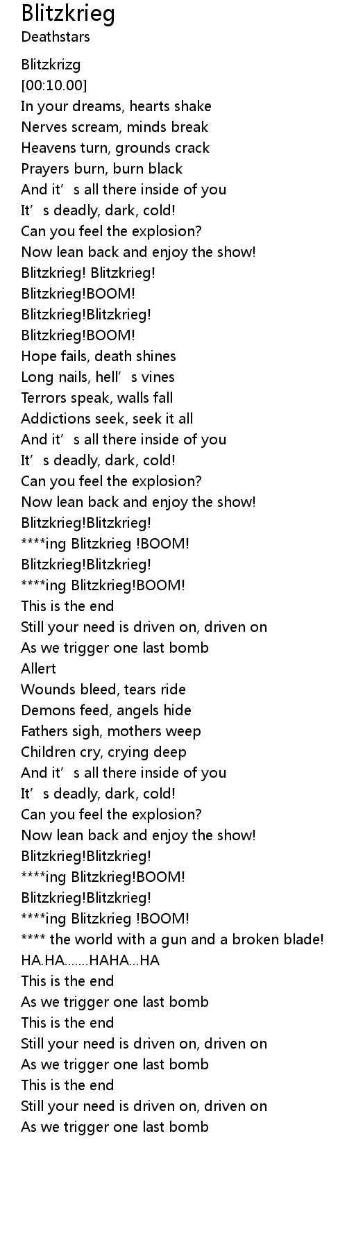 | [02:52.00] | ing Blitzkrieg ! BOOM! |