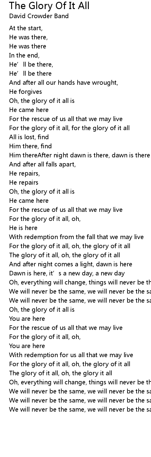 | The glory of it all, oh, the glory it all | |