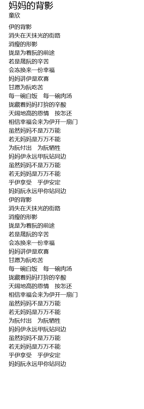 | [01:33.200] | 妈妈伊永远甲阮站同边 |