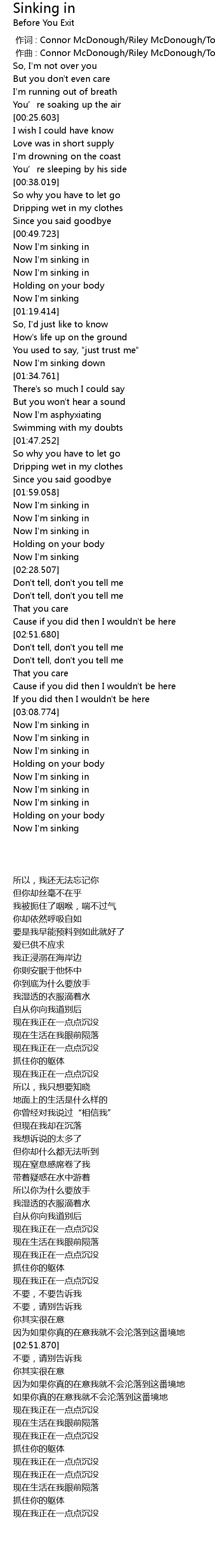| [02:25.555] | Now I' m sinking |