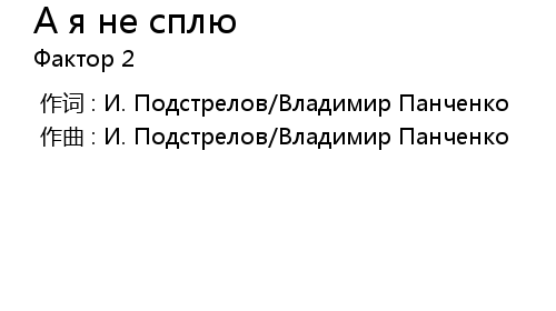 | [00:00.000] | 作曲 : И. Подстрелов/Владимир Панченко |