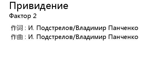 | [00:00.000] | 作曲 : И. Подстрелов/Владимир Панченко |