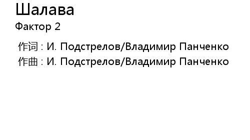 | [00:00.000] | 作曲 : И. Подстрелов/Владимир Панченко |