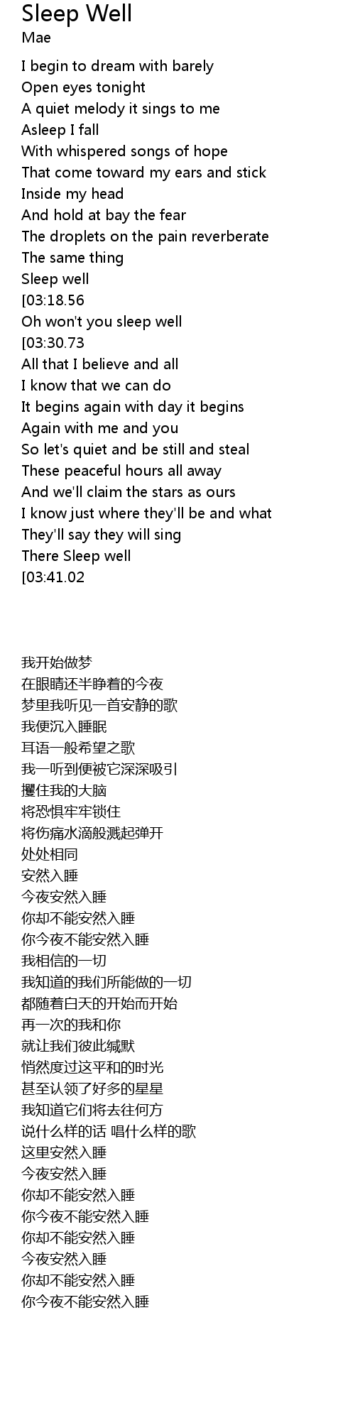 | [03:27.19][03:41.02][03:53.24] | Won't you sleep well |