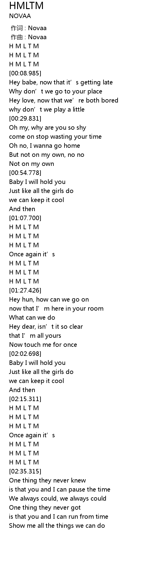 | [02:32.295] | H M L T M |