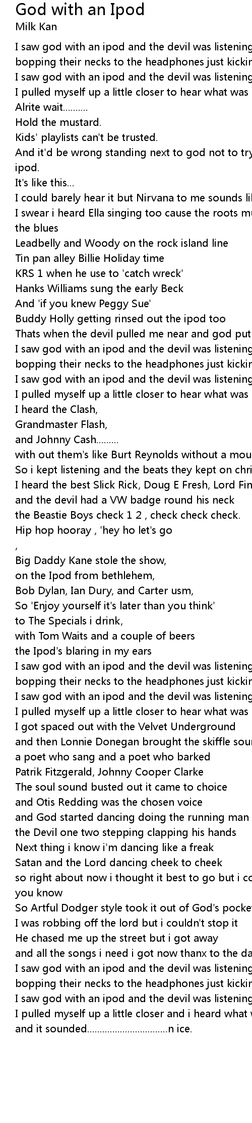 | I saw god with an ipod and the devil was listening too | |