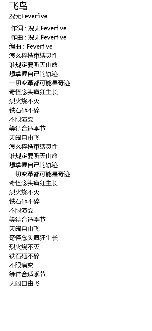 | [00:00.099] | zuò qǔ : kuàng wú Feverfive |