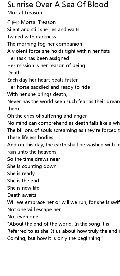 | No mind can comprehend as death falls like a whisper or a drop of blood | |