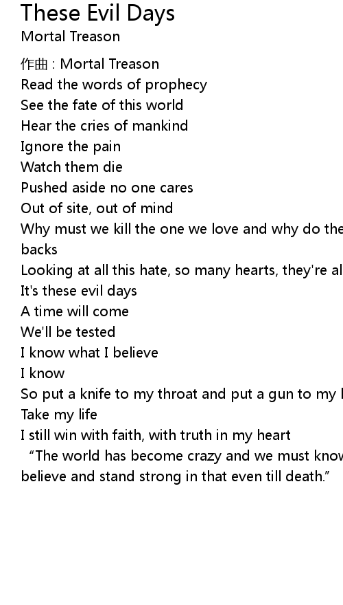 | Song | These Evil Days |