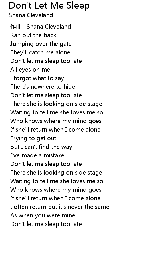| [03:00.738] | Don' t let me sleep too late |