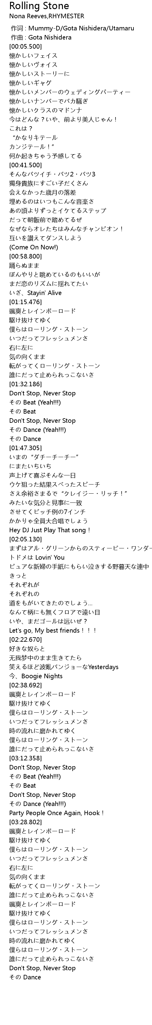 | [03:08.410] | 僕らはローリング・ストーン |