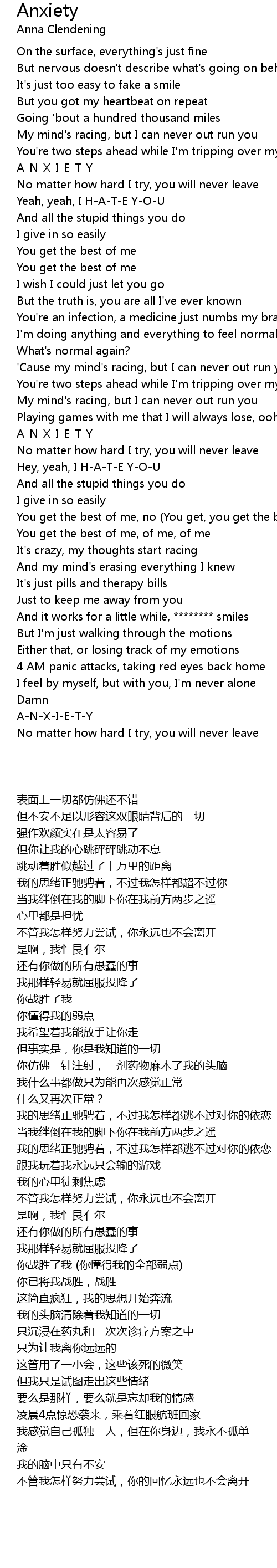 No matter how hard I try, you will never leave |