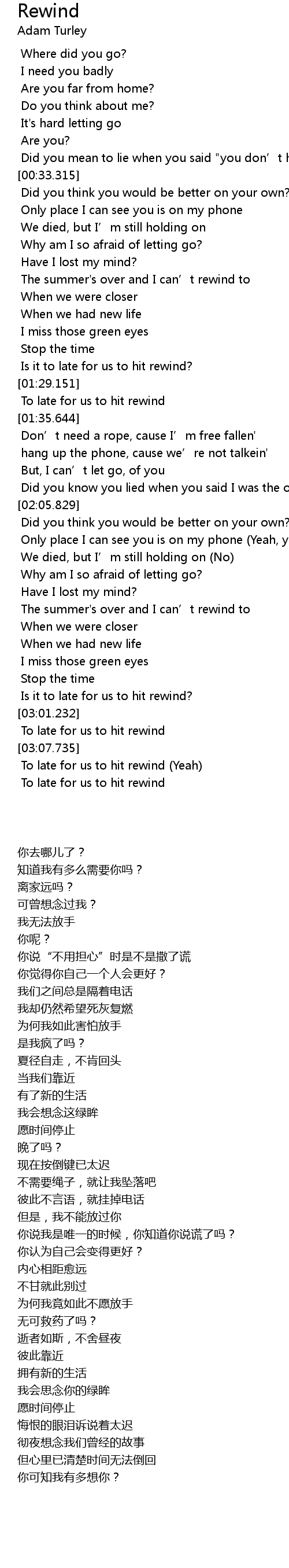 | [03:11.053] | To late for us to hit rewind (Yeah) |