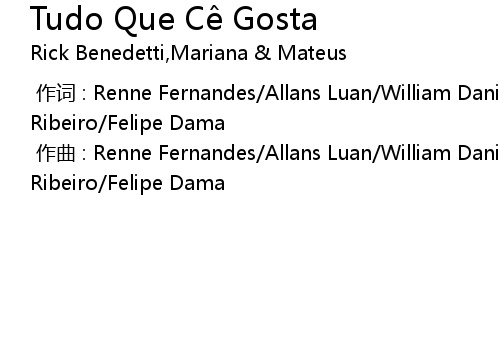 | [00:00.000] | 作曲 : Renne Fernandes/Allans Luan/William Danie/Rafa Ribeiro/Felipe Dama |