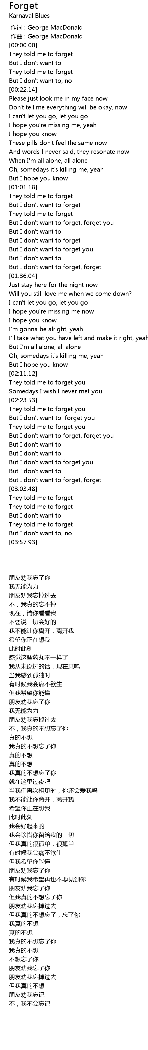| [02:59.10] | But I don' t want to forget, forget |