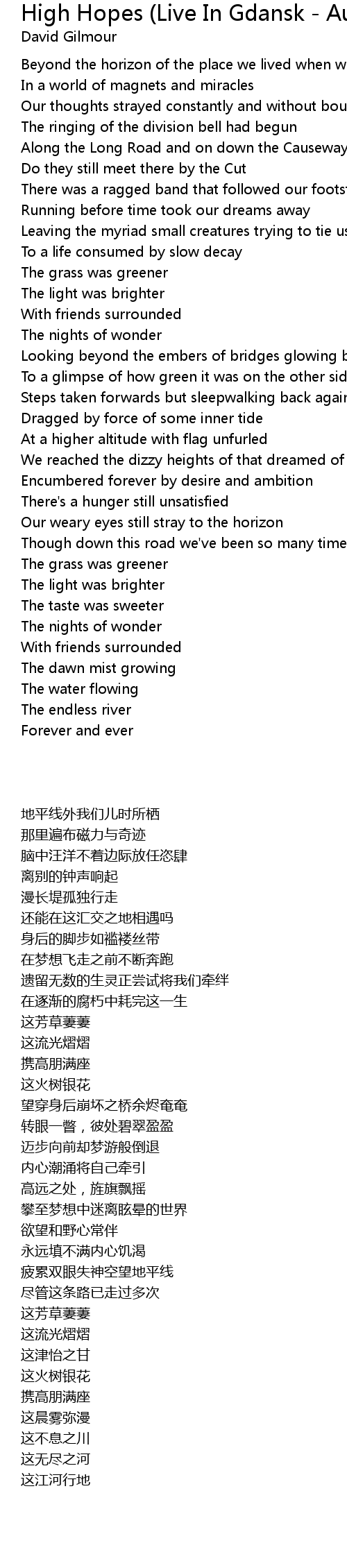 Beyond the horizon of the place we lived when we were young |