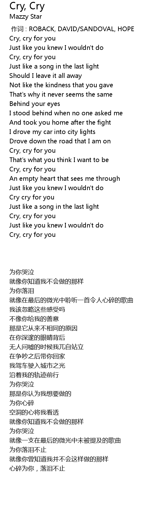 | [00:00.00] | 作词 : ROBACK, DAVID/SANDOVAL, HOPE |