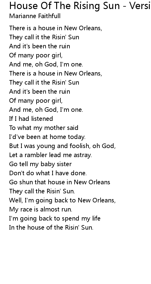 Go shun that house in New Orleans |