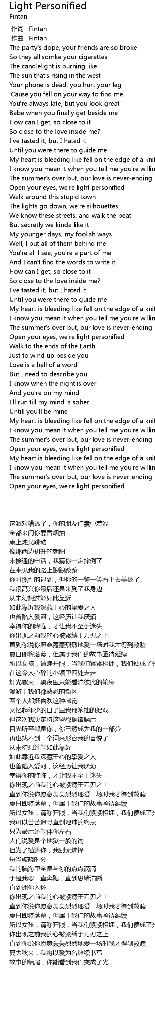 | [03:11.368] | Open your eyes, we' re light personified |