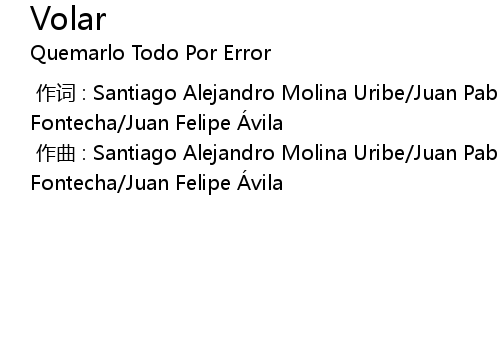 | [00:00.000] | zuo qu : Santiago Alejandro Molina Uribe Juan Pablo Rocha David Fontecha Juan Felipe Á vila |