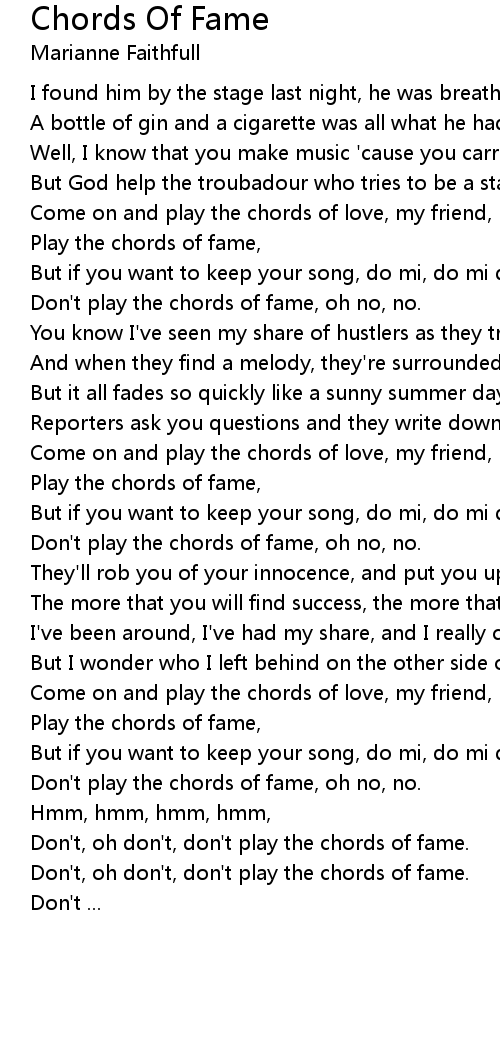Don't play the chords of fame, oh no, no. |