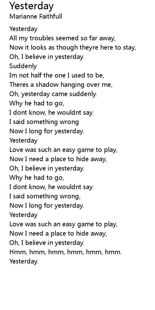 | Song | Yesterday |