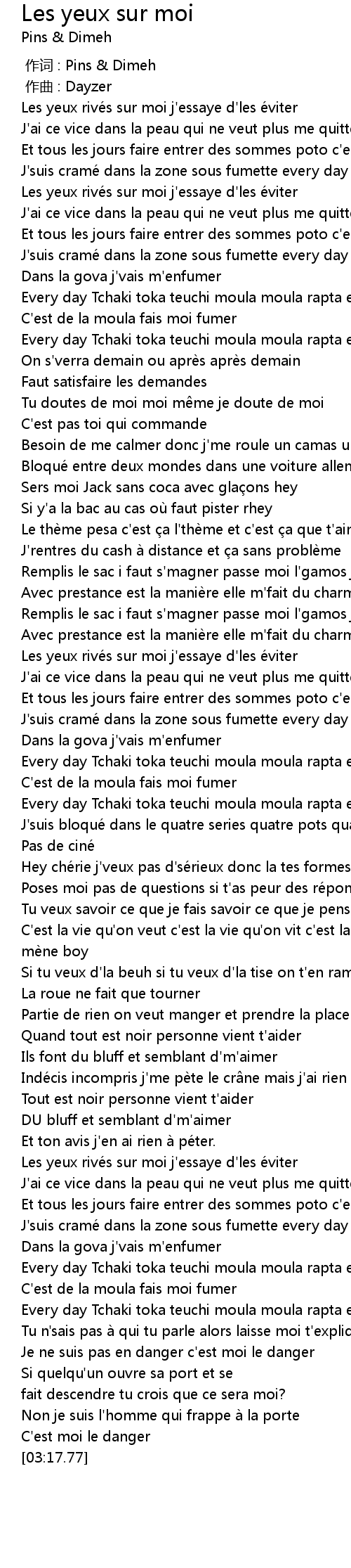 | [02:36.62] | Les yeux rive s sur moi j' essaye d' les e viter |