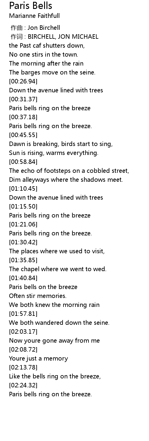 | [00:00.00] | zuò qǔ : Jon Birchell |