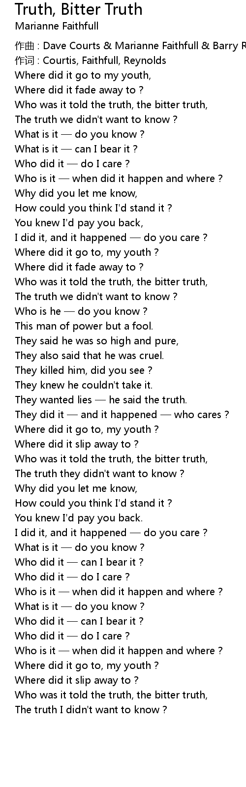 | 作曲 : Dave Courts & Marianne Faithfull & Barry Reynolds | |