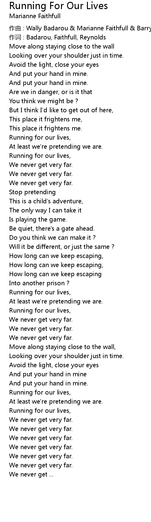 | Running for our lives, | |