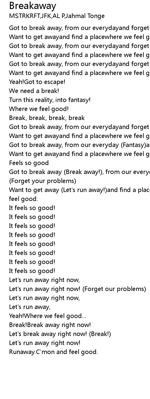 Got to break away, from our everydayand forget our problems |