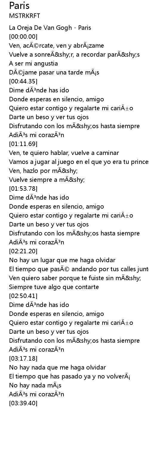 | [00:-01.00] | La Oreja De Van Gogh - Paris |
