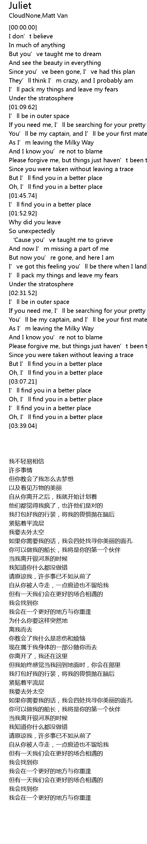 | [01:42.14] | Oh, I' ll find you in a better place |