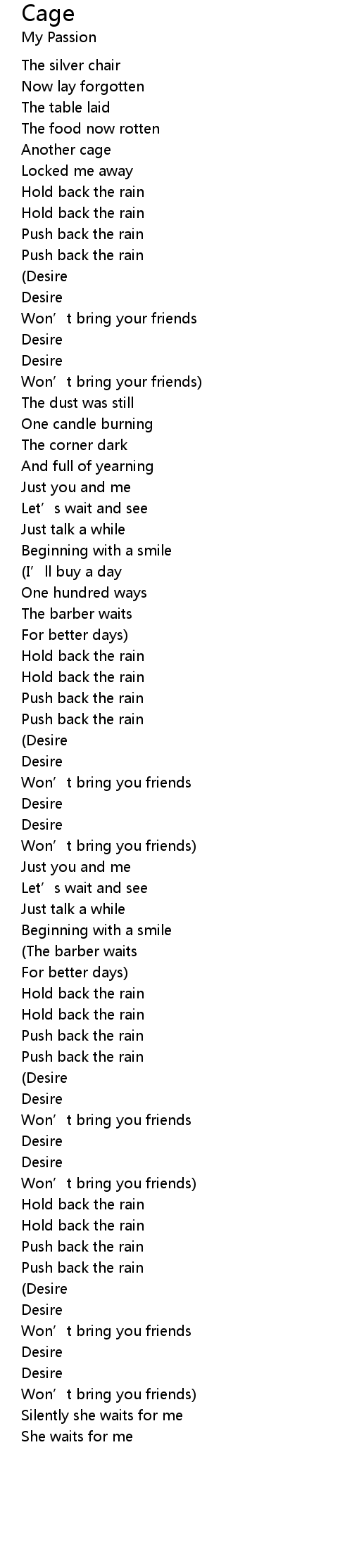 | Song | Cage |