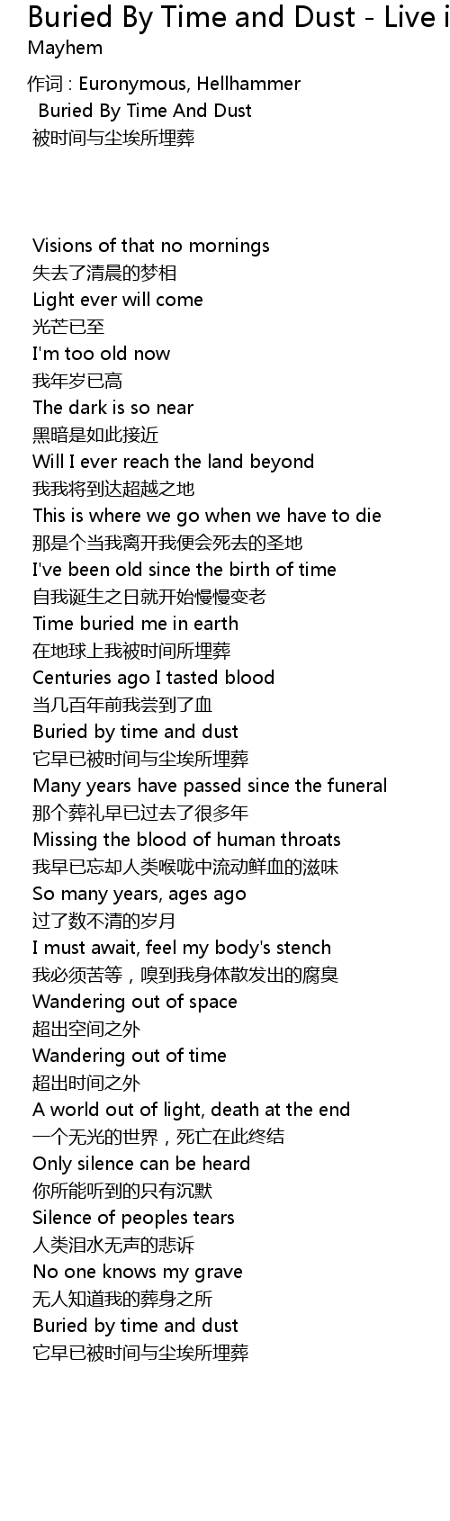 | Song | Buried By Time and Dust - Live in Leipzig |